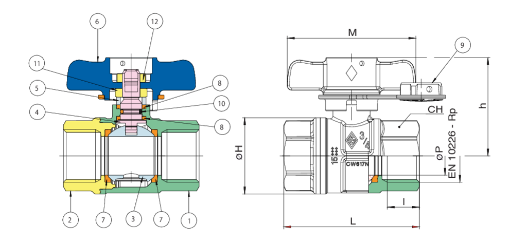 6 T-HANDLE BRASS CW617N UNI EN 12420 1